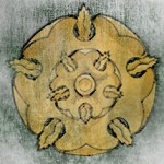 The most obviously history-inspired family sigil is that of the Tyrells, which clearly is a version of the Tudor Rose. The Tudor Rose is a joining of the Red and White Roses of Lancaster and York, since the reign of the Tudor ended the War of the Roses between those two houses.